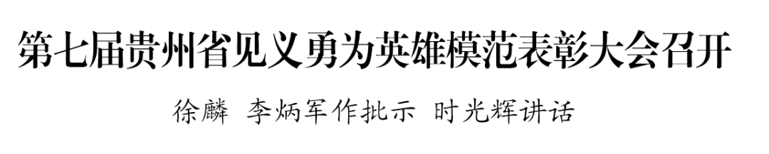 2月16日,第七届贵州省见义勇为英雄模范表彰大会在贵阳召开,会议全面贯彻落实党的二十大精神,深入学习领会习近平总书记关于见义勇为工作的重要指示精神,隆重表彰近年来全省涌现出的见义勇为英雄模范和群体,不断推进见义勇为工作,为奋力谱写多彩贵州现代化建设新篇章作出新的更大贡献。省委书记、省人大常委会主任徐麟,省委副书记、省长李炳军作批示。省委副书记、省委政法委书记时光辉出席并讲话,省领导李豫贵、董家禄、冉霞、王永金出席。