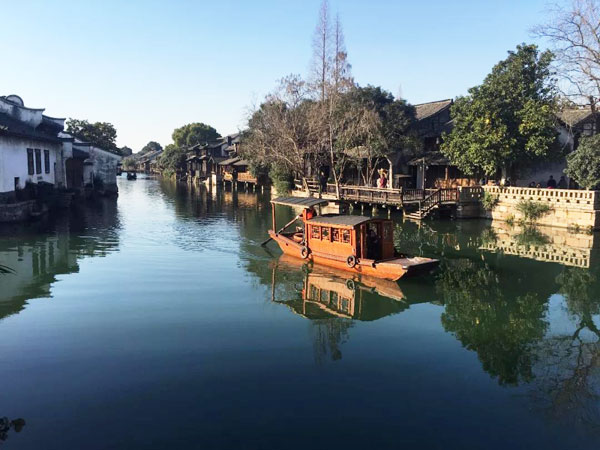 《渡情》有语“西湖美景三月天”,其实一月的西湖同样秀色可餐。12日一早,黔南热线团队来到西湖便遇上大晴天,占尽天时地利人和。秀美的风景+温暖的阳光+正能量的团队=一张极具感染力的背影照片。这正好符合了黔南热线此行的前三个目的:面向朝阳——辞旧迎新、眺望远方——开阔眼界、团队协作——提高频率!第二站 乌镇