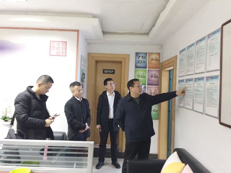 参观公司荣誉墙 伍强力一行首先参观了公司文化墙,还走进办公室、党员活动室查看相关制度和资料。