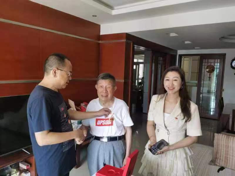 “感谢您为党和学校做出的贡献”“您要多注意身体”。在有着五十余年党龄的老党员何志明、梁怀敬家中,都匀二中副校长江苏臣同志、工会主席张晓实同志代表学校高度赞扬了他们为党的教育事业所作出的贡献,接着又向何老师、梁老师简单介绍了近年来学校的发展情况。在交谈中了解了他们的生活、健康状况和家庭情况,并叮嘱他们一定要保重身体。最后为其颁发了“光荣在党50年”纪念章、送上书籍《百年大党面对面》传递了党和学校的温暖。